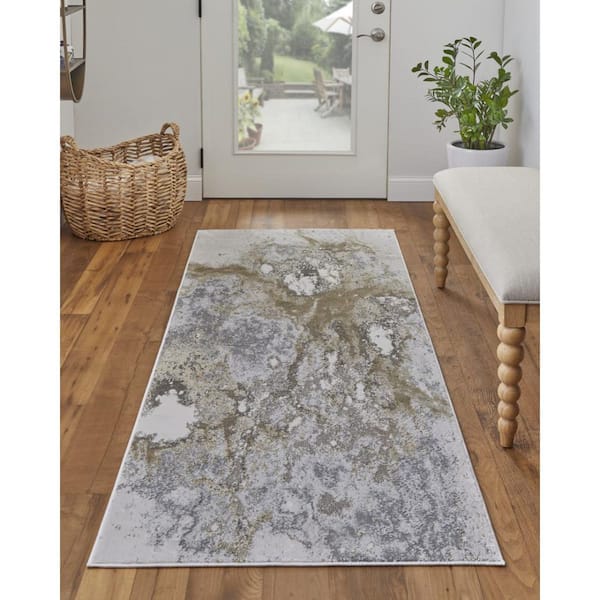2 ft. x 8 ft. Gray, Ivory Abstract Runner Rug