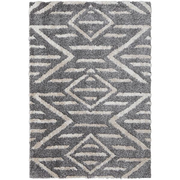 2 ft. x 8 ft. Gray, Ivory Geometric Area Rug