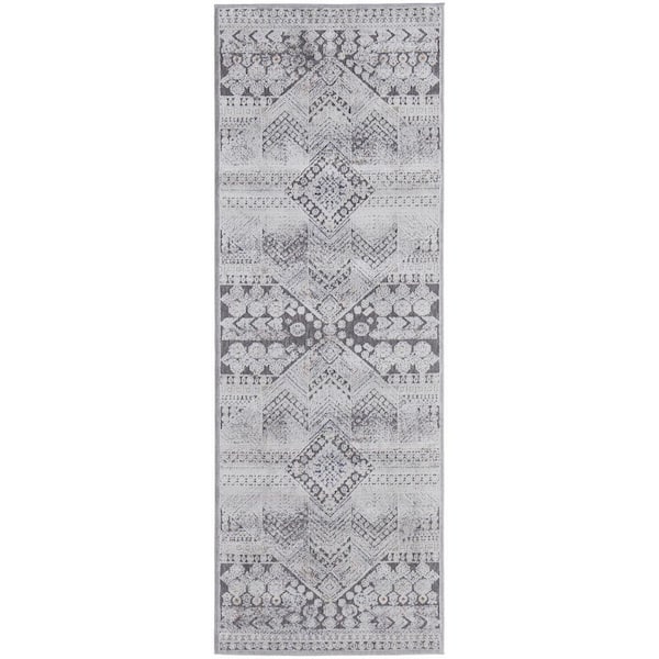 2 ft. x 8 ft. Gray, Ivory Geometric Runner Rug