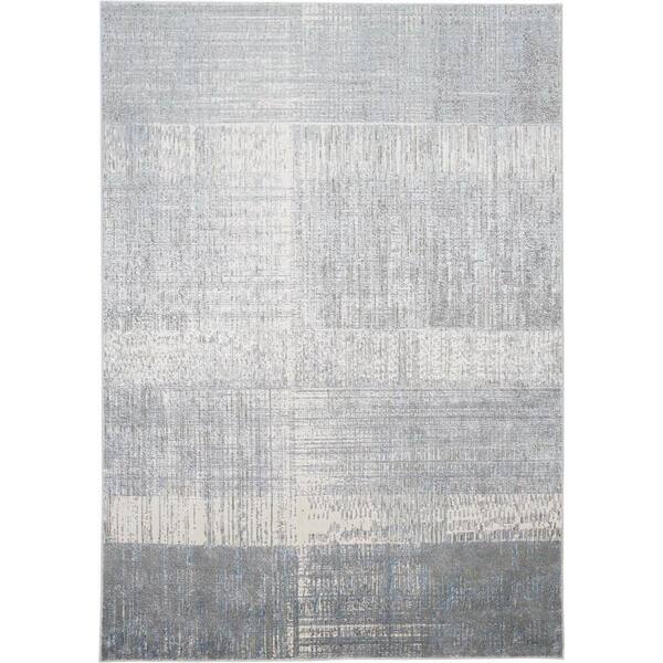 2 ft. x 8 ft. Gray, White Abstract Area Rug