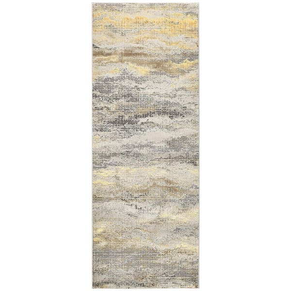 2 ft. x 8 ft. Gray and Ivory Abstract Area Rug