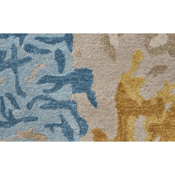 • Ivory yellow and blue wool area rug with 1/2 inch thickness