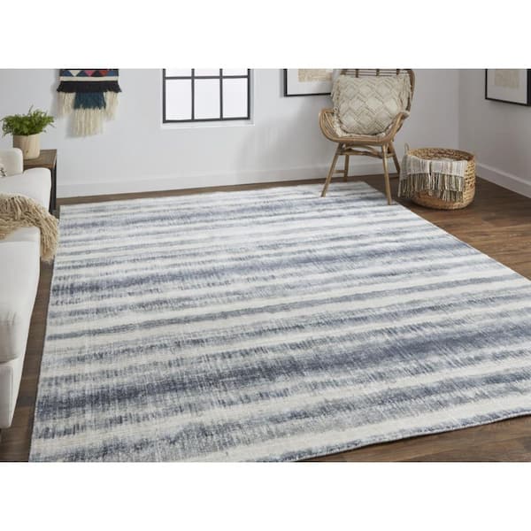 2 ft. x 8 ft. Ivory, Blue Abstract Area Rug