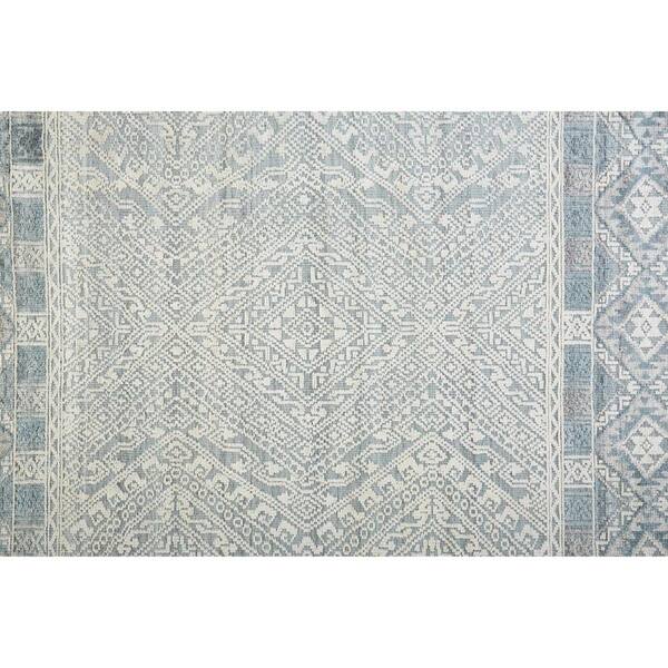 2 ft. x 8 ft. Ivory, Blue Geometric Area Rug