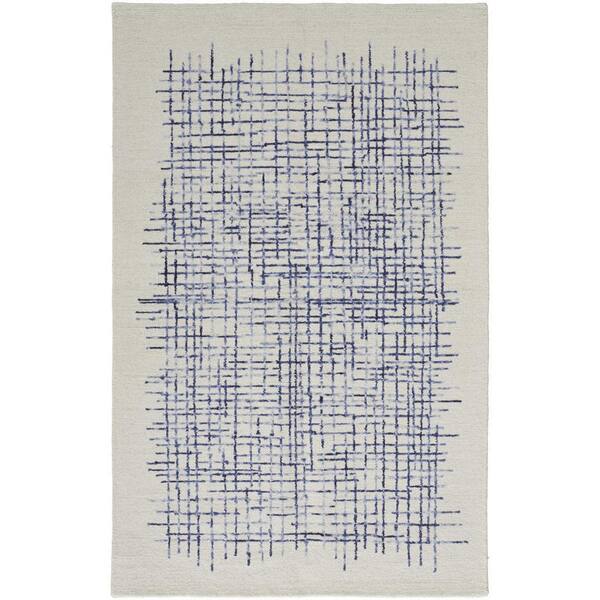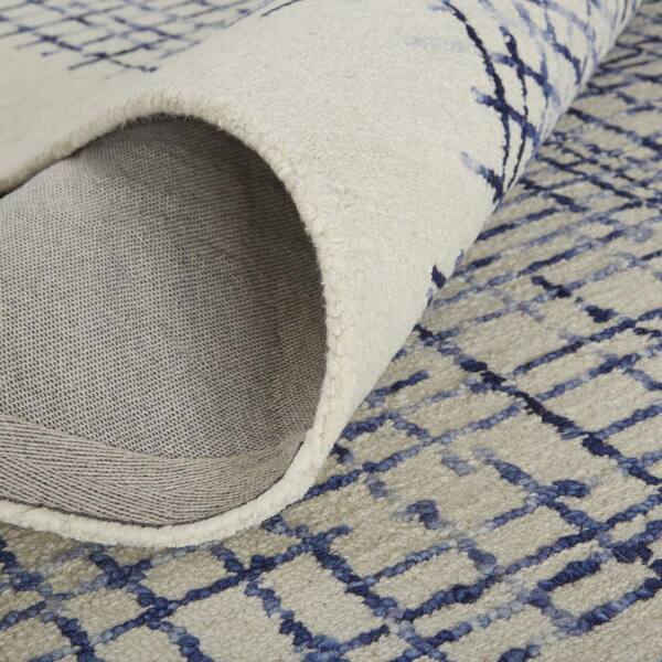 2 ft. x 8 ft. Ivory, Blue Plaid Area Rug