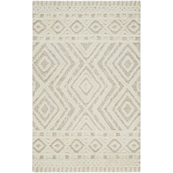 2 ft. x 8 ft. Ivory Geometric Area Rug