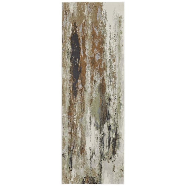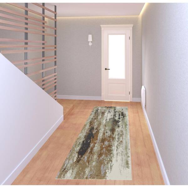2 ft. x 8 ft. Orange and Purple and Green Abstract Area Rug
