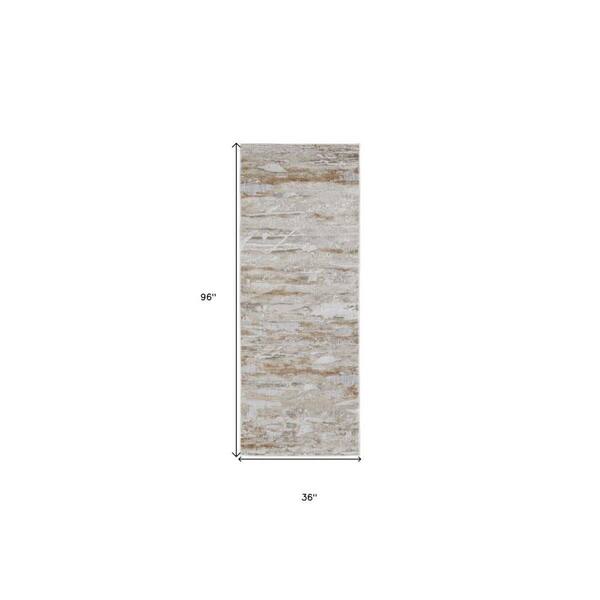 2 ft. x 8 ft. Tan, Ivory Abstract Runner Rug