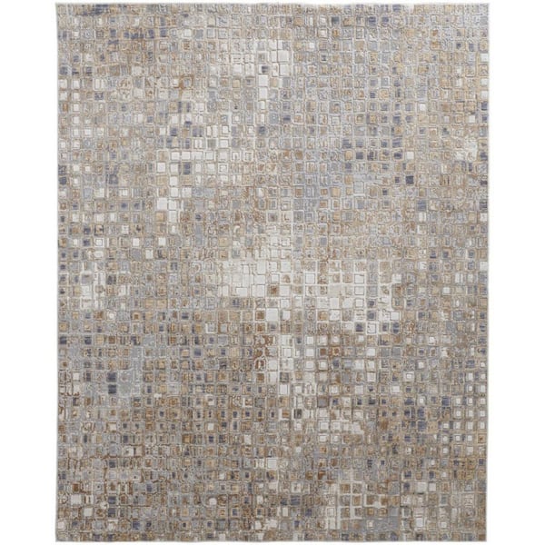 2 ft. x 8 ft. Tan, Ivory Geometric Area Rug
