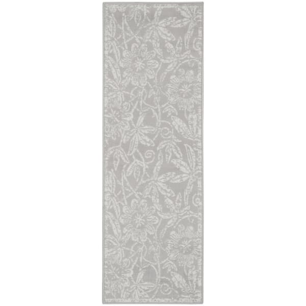 2 ft. x 8 ft. White Floral Washable Area Rug Runner Rug