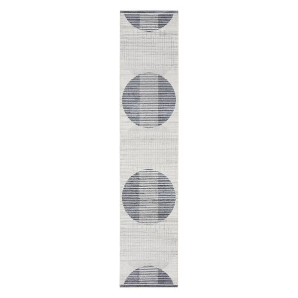 2 ft. x 8 ft. White Geometric Wahsable Area Rug