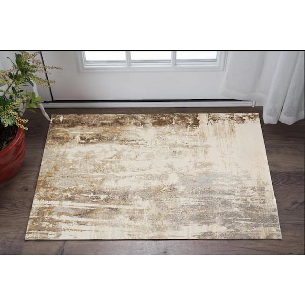 2 x 3 Tan Ivory And Gray Abstract Area Rug