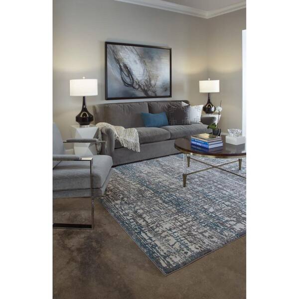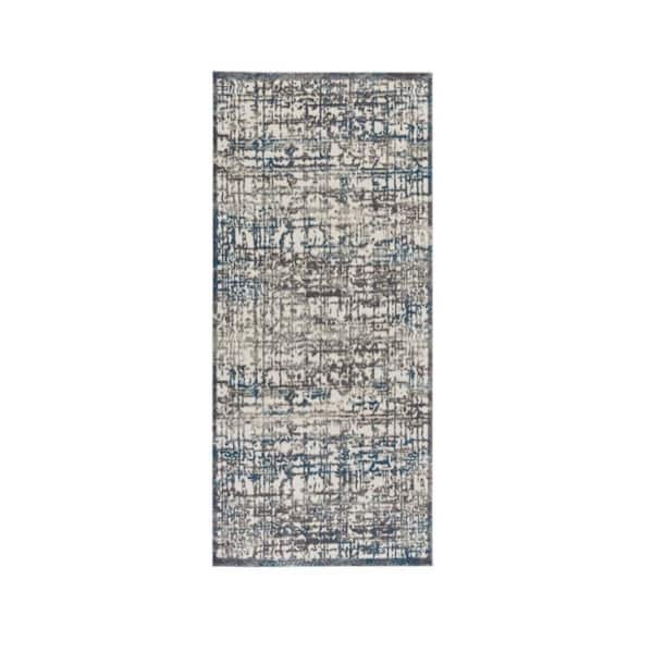 2 x 7 Gray, Ivory, Blue Abstract Runner Rug