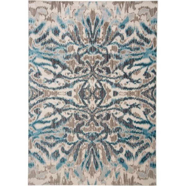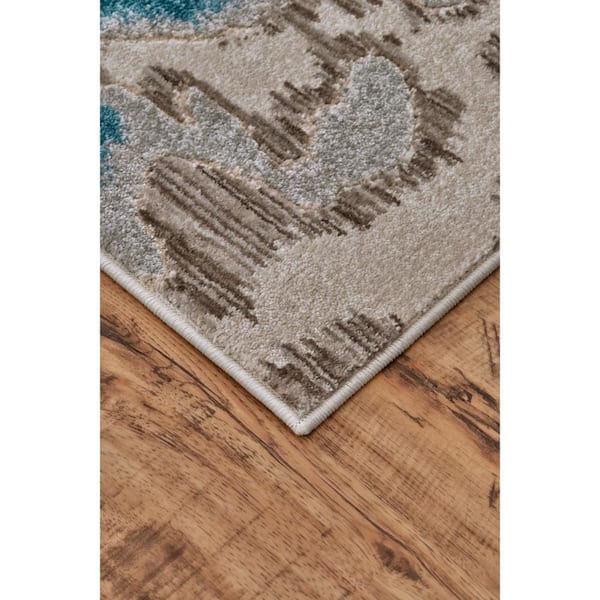 2 x 8 Taupe, Blue Abstract Runner Rug