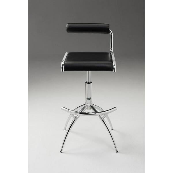 23 in. Black Low Back Metal Adjustable Height Bar Chair with Faux Leather Seat Set of 2