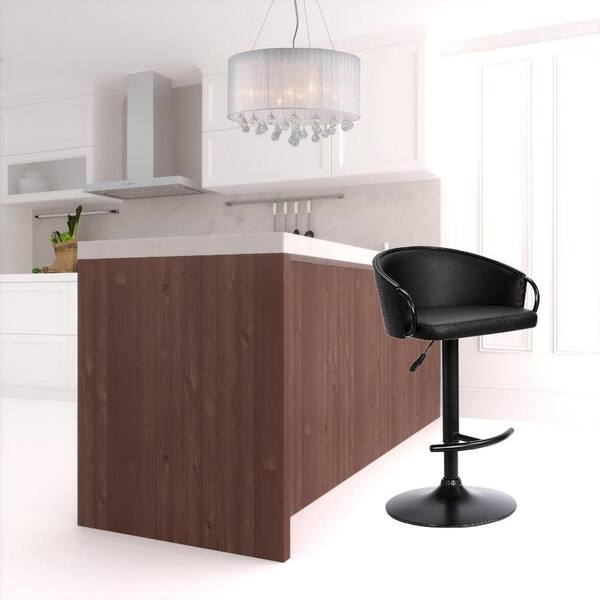 24.25 in. Black Low Back Metal Counter Height Bar Chair with Faux Leather Seat