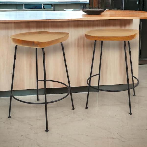24.5 in. Natural Backless Metal Counter Height Bar Chair with Wood Seat Set of 2