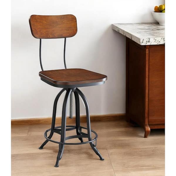 24 in. Chestnut High Back Metal Counter Height Bar Chair with Wood Seat