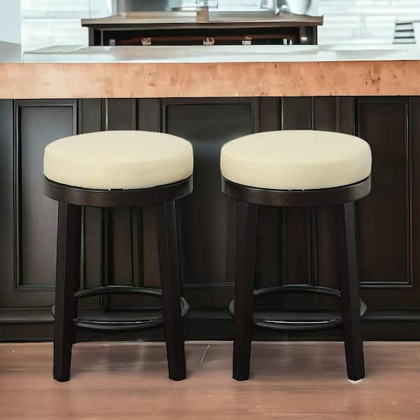 24 in. Cream Backless Wood Bar Chair with Faux leather Seat Set of 2