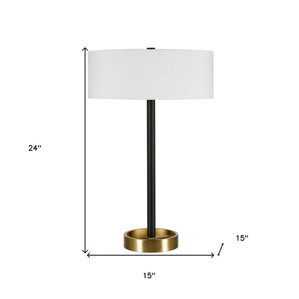 24 in. White Glam Integrated LED Bedside Table Lamp with White Fabric Shade