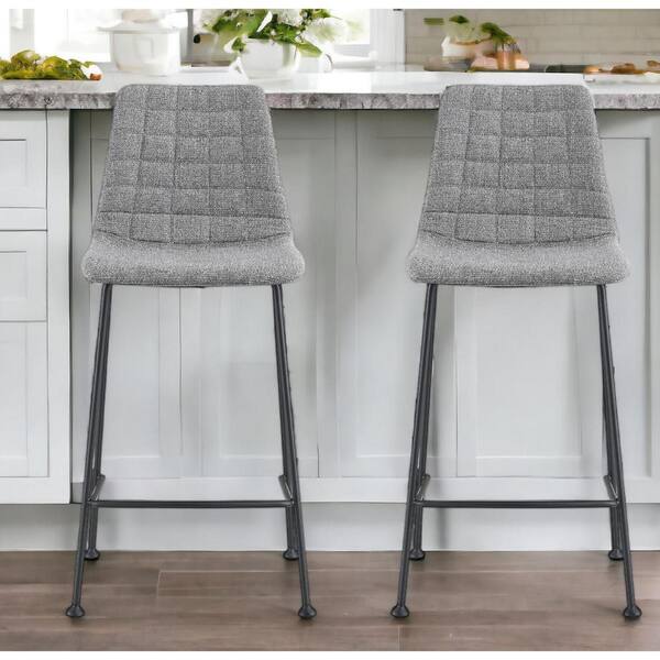 25.6 in. Light Gray Low Back Metal Counter Height Bar Chair with Fabric Seat Set of 2