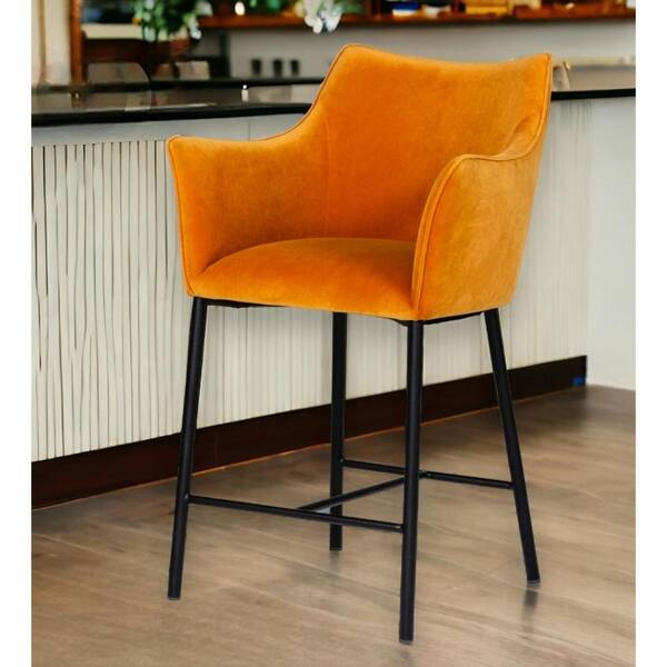 25.6 in. Yellow and Black Low Back Metal Counter Height Bar Chair with Upholstery Seat