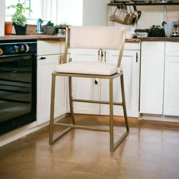 25 in. Antiqued Brass Low Back Metal Counter Height Bar Chair with Upholstery Seat