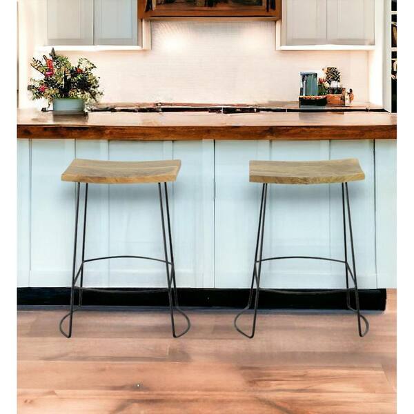 25 in. Natural Backless Metal Counter Height Bar Chair with Wood Seat Set of 2