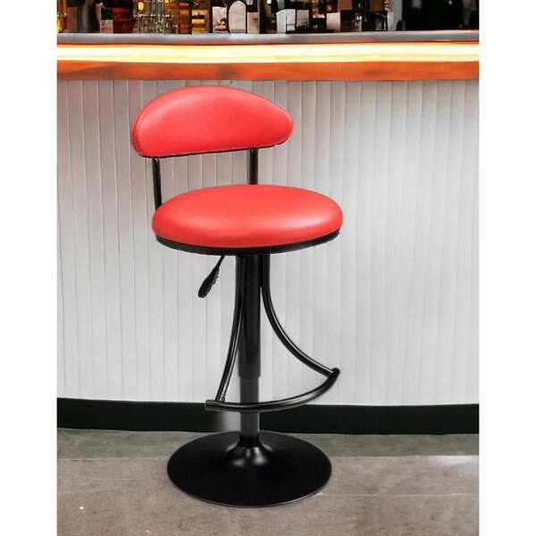 25 in. Red Low Back Metal Adjustable Height Bar Chair with Velvet Seat