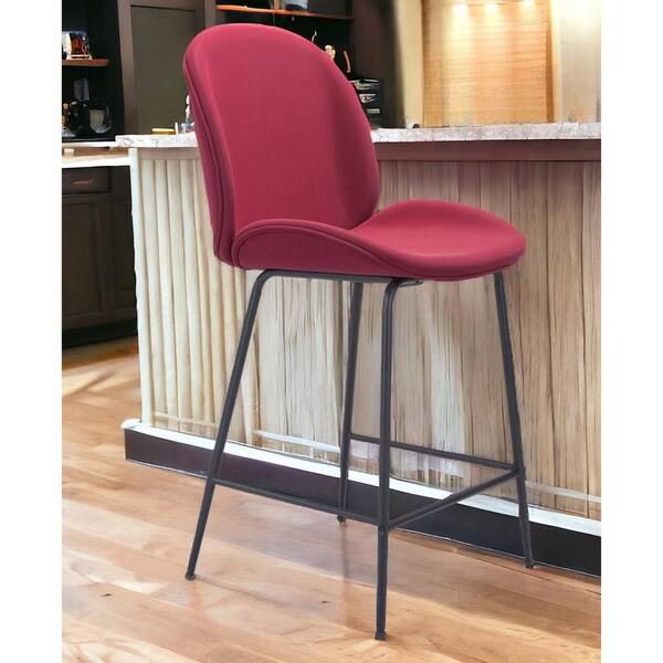 26.4 in. Red Low Back Metal Counter Height Bar Chair with Upholstery Seat