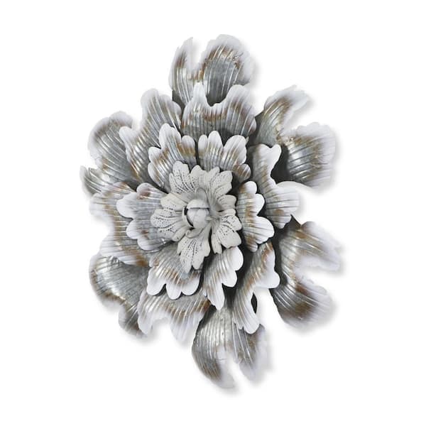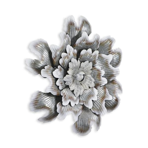 26.5 in. x 26.5 in. Grey, White Off Galvanized Metal Flower Hanging Dimensional Wall Art 1-Piece