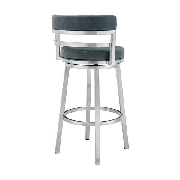 26 in. Blue and Silver Low Back Metal Counter Stool Faux Leather Seat