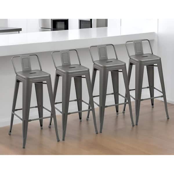 26 in. Dark Gray Low Back Metal Counter Height Bar Chair with Metal Seat Set of 4