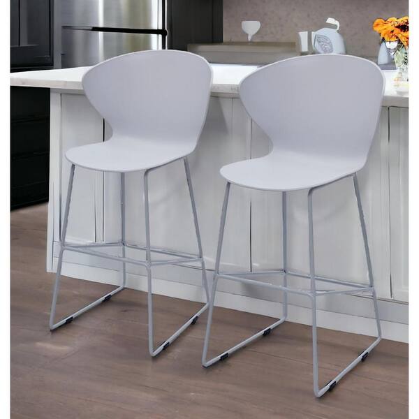 26 in. Gray Low Back Metal Counter Height Bar Chair with Plastic Seat Set of 2