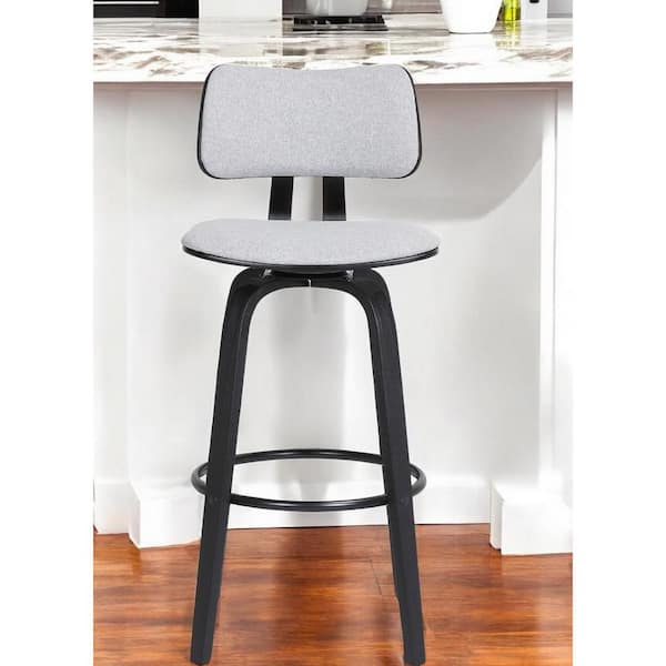 26 in. Light Gray Low Back Wood Counter Stool Fabric Seat