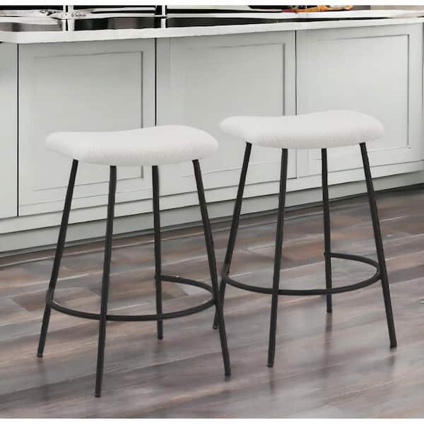 26 in. White Backless Metal Counter Height Bar Chair with Fabric Seat Set of 2