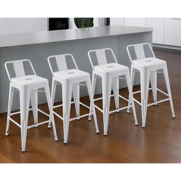26 in. White Low Back Metal Counter Height Bar Chair with Metal Seat Set of 4