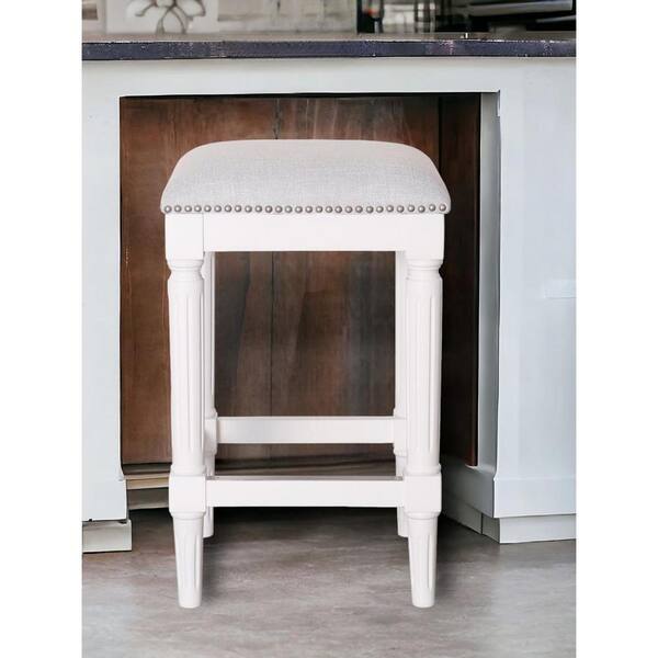 27 in. Antiqued White Backless Wood Counter Height Bar Chair with Upholstery Seat