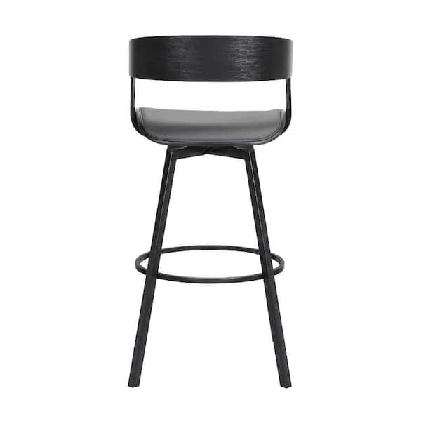 27 in. Black and Gray High Back Metal Counter Stool Faux Leather Seat