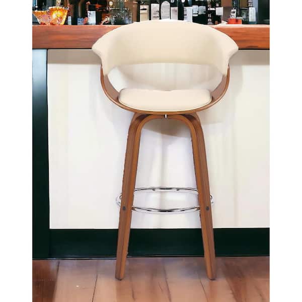 27 in. Cream Low Back Wood Counter Stool Faux Leather Seat
