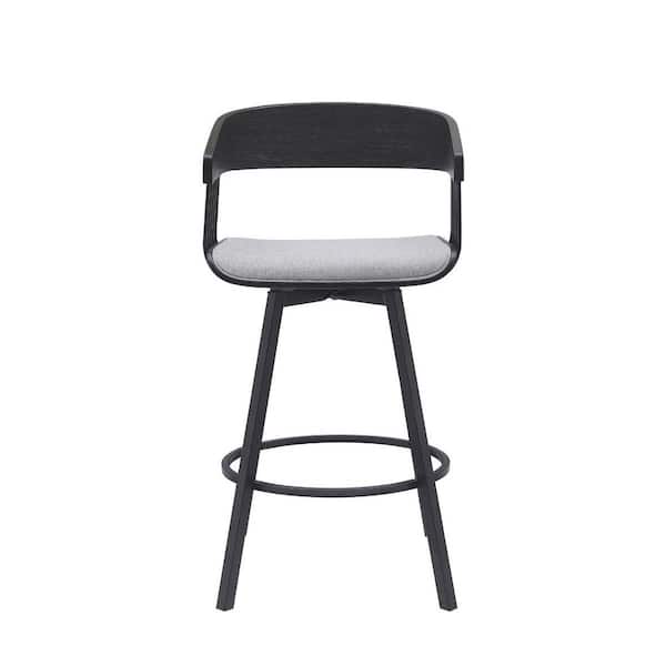 27 in. Light Gray High Back Metal Counter Stool Fabric Seat
