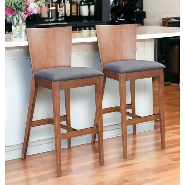 29.3 in. Gray Low Back Wood Counter Height Bar Chair with Upholstery Seat Set of 2