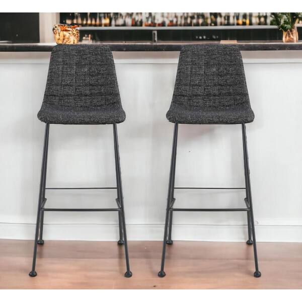29.73 in. Black Low Back Metal Bar Chair with Fabric Seat Set of 2