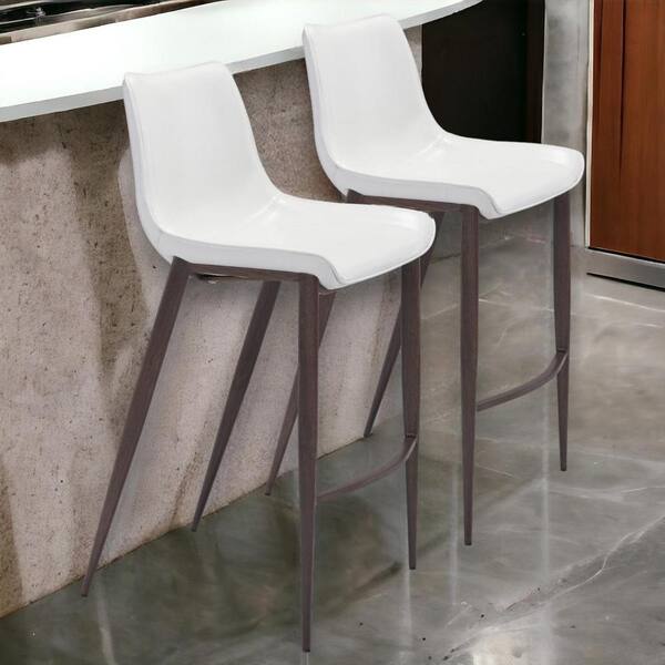 29.9 in. White Low Back Metal Bar Chair with Upholstery Seat Set of 2