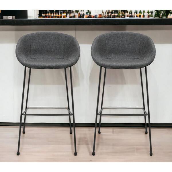 29.93 in. Black and Gray Low Back Metal Bar Chair with Fabric Seat Set of 2