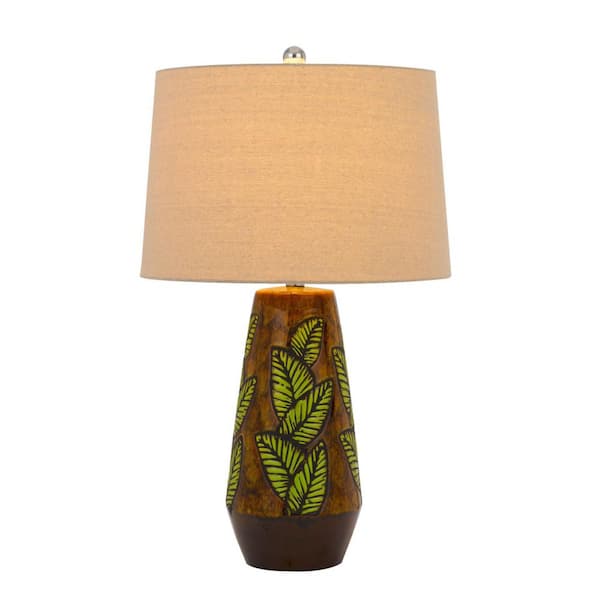 29 in. Brown Ceramic Table Lamp with Tan Empire Shade