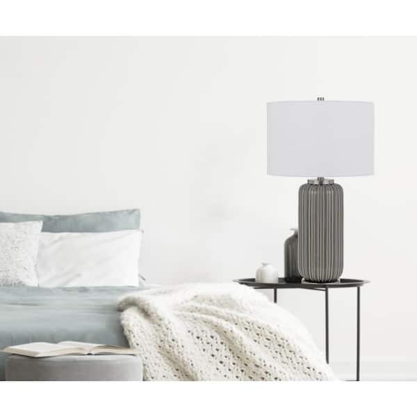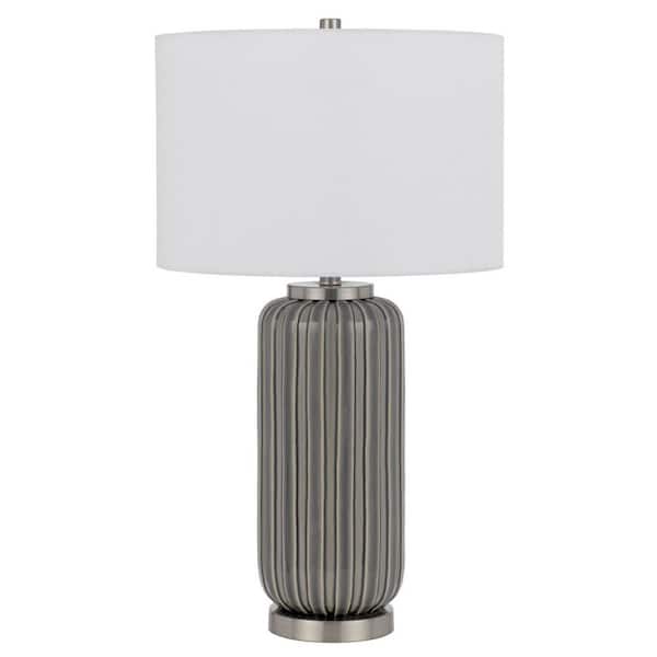 29 in. Taupe Metal Table Lamp with White Drum Shade