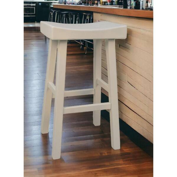 30 in. Antiqued White Backless Wood Counter Height Bar Chair with Wood Seat
