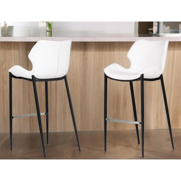 30 in. Black and White Low Back Metal Bar Chair with Faux leather Seat Set of 2