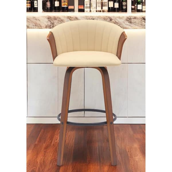 30 in. Cream High Back Wood Bar Stool Faux Leather Seat
